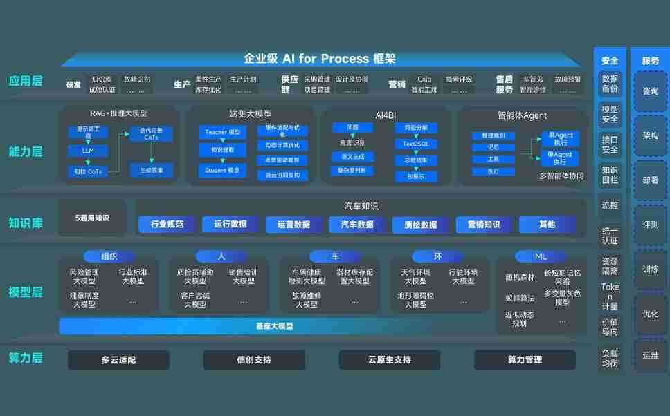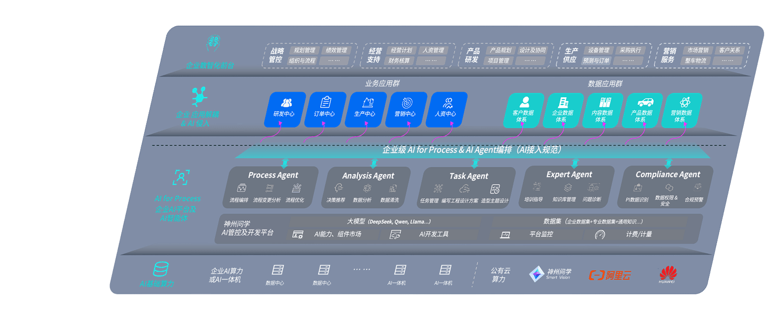 端到端的一站式AI工作空间深度融合了从企业战略规划到日常经营的全流程业务板块,,,定向解决车企内部领域多、、部门多、、链条长、、、、场景碎片化等难题,,,支持车企快速构建以AI为核心的生产力写作体系,,,,实现任务执行与AI能力的无缝集成与交互